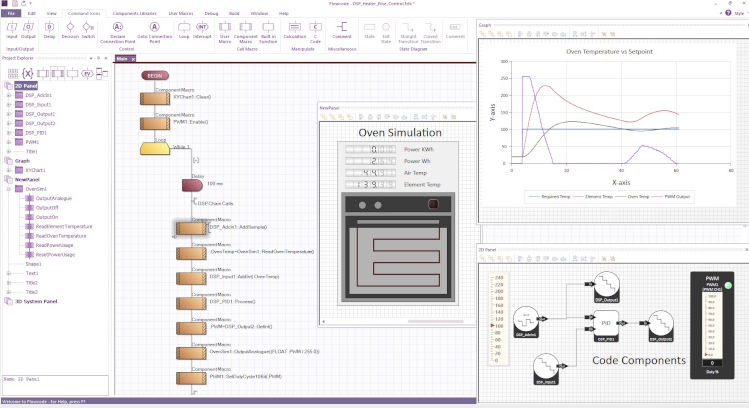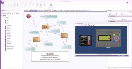 在最新版本的流程代码中,用户现在可以欢迎改进的界面,包括新的工具栏和色带,状态机编程,能够创建多个图像和文本框的彩色图形显示器,一个新的iot组件包和微控制器外围设备。