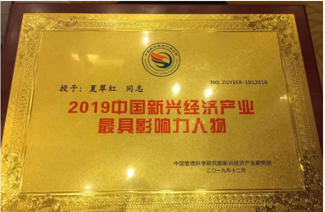 新兴经济产业大会暨2019中国科技创新影响力峰会近期在北京举行,峰会由中国管理科学研究院指导、中国管理科学研究院新兴经济产业研究所主办。会上,钉丁堂公司董事长夏翠红荣获“2019中国新兴经济产业最具影响力人物”。