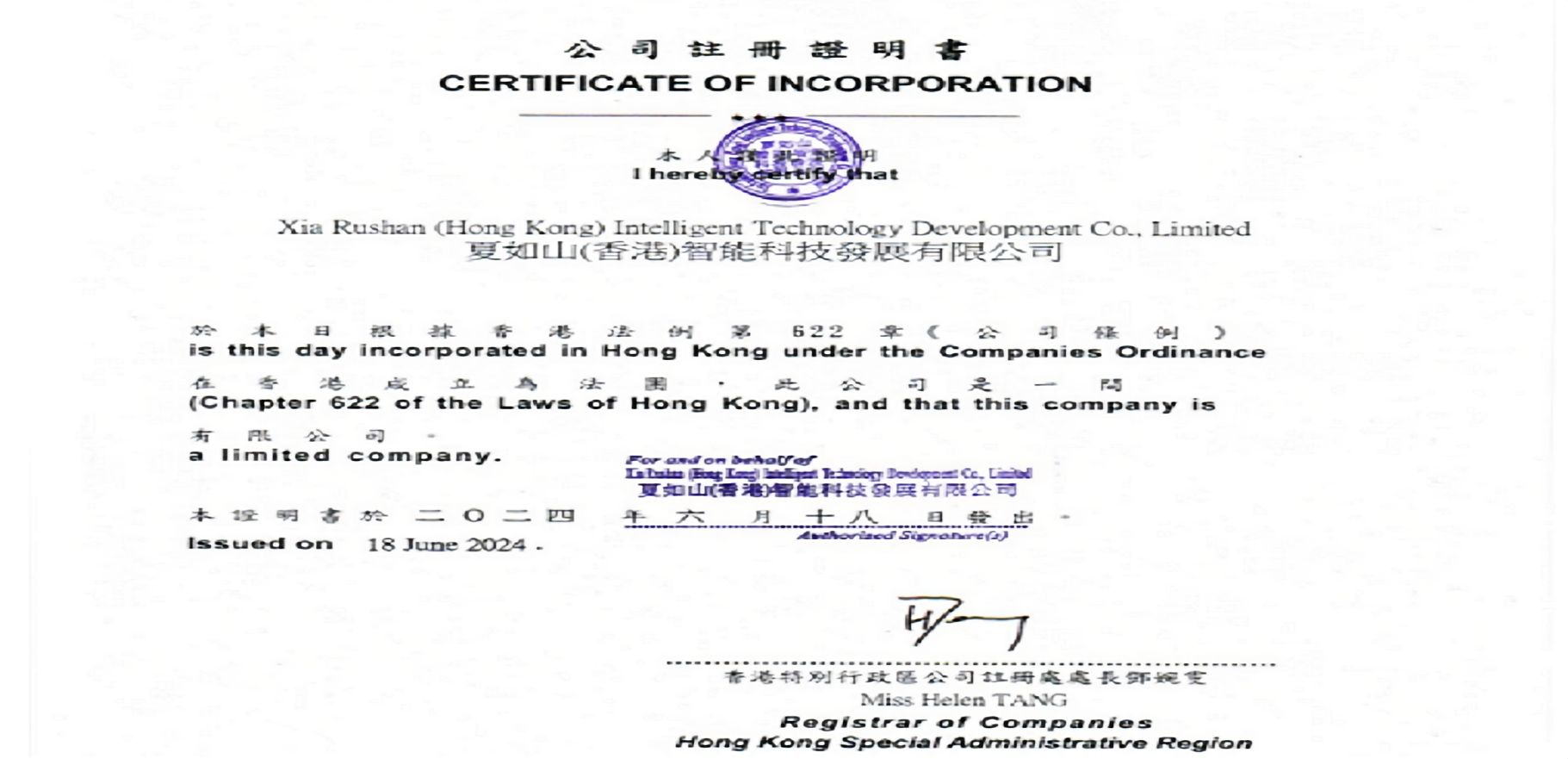 夏如山(香港)智能科技發展有限公司Xia Rushan (Hong Kong) Intelligent Technology Development Co., Limited,商业登记号码:76698033,经营范围:技術開發、技術转让、技術推廣,技術培训,技術服務,國際貿易。依托英国Matrix公司Flowcode“一键生成”芯片集成流程图的平台,从事Flowcode领域嵌入式人工智能软件产品开发、应用及技术推广和培训事宜,业务遍及全世界。助力中国大陆内地企业“走出去”,以“一带一路”建设为重点推动形成开放新格局,可凭借其国际金融、航运、贸易中心地位优势和发达的金融市场、先进的风险管理水平、优惠的税收政策,发挥不可替代的重要作用,为中国大陆内地企业高水平开放、高质量发展创造良好环境,开辟广阔空间。
